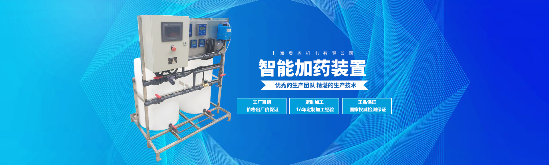 上海奧棟機電有限公司成立于2008年6月,是一家集環保設備的研發、生產、銷售、安裝調試、售后服務為一體的高新技術企業。公司擁有雄厚的技術力量和先進的生產設備, 公司研發團隊先后取得國家專利局20項實用新型專利,另外2項發明專利已在實質審查中。已獲得國家高新技術企業及專精特新榮譽資質。主要產品有:智能變頻恒壓供水設備、不銹鋼組合水箱、定壓補水裝置、智能加藥設備、軟化水設備、RO純水設備、循環水旁濾裝置、水處理儀、紫外線消毒設備、袋式過濾器等。